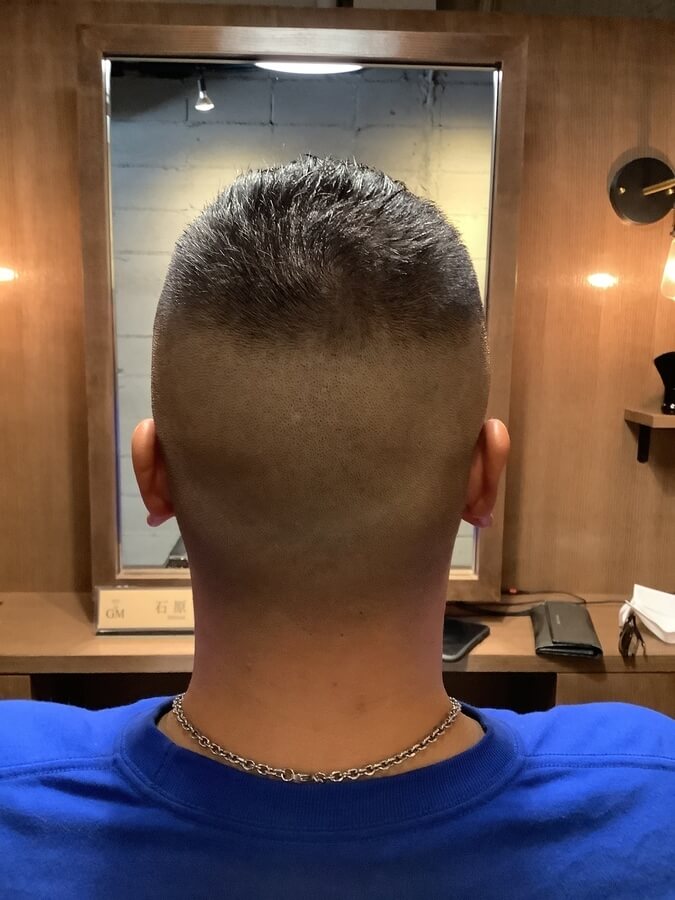 長さ0.3㎜から6mmのローフェードで周りをスッキリ仕上げたスタイルです。「きっちりスタイルにしたい」という方はもちろん、「低めに刈り上げてスッキリしたいけれど、めちゃくちゃ短くしたくはない」という方にもオススメです!