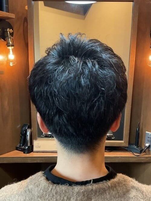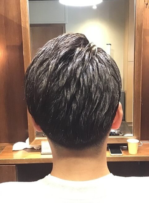 上記で説明したように、刈り上げの厚み(長さ)で与える印象が変わります。上記を参考にしながら、刈り上げ部分の希望の厚み(長さ)をお伝えください。