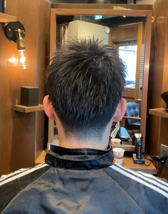 裾周りを6mmからスタートした、高めのツーブロックスタイルです。スッキリした爽やかさがたまりません。