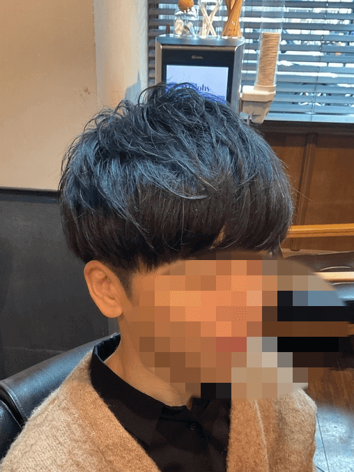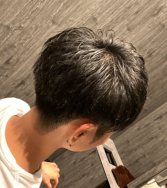 裾周りは6mmで刈り上げてナチュラルかつスッキリと仕上げ、トップはふんわり軽めのマッシュにした春っぽいスタイルです。夏に向けて長さを調節できるよう、短く切りすぎていないのがポイント!