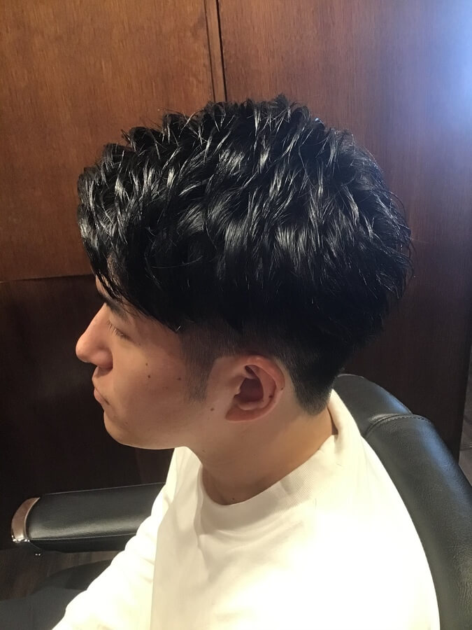 ツーブロックとは髪の上部が長くて下部は短い、上下で段差のついているスタイル(上部の毛がかぶさっているスタイル)のことをいいます。