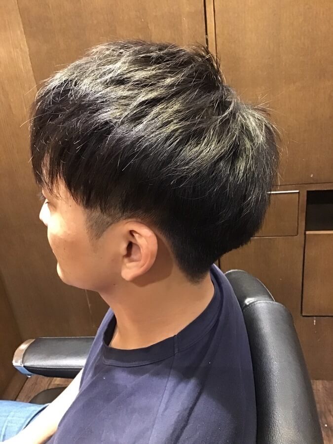 サイドとバックは4mm程度のツーブロックにして、トップは自然な動きとボリュームを出したマッシュスタイルに。