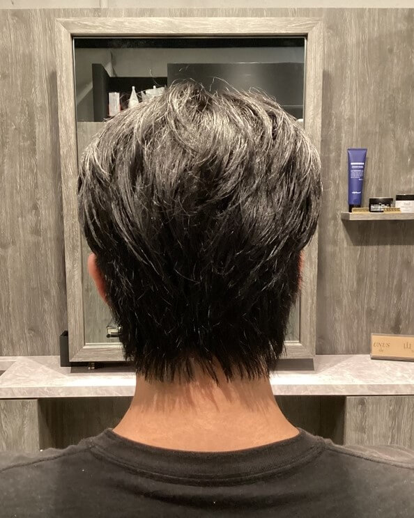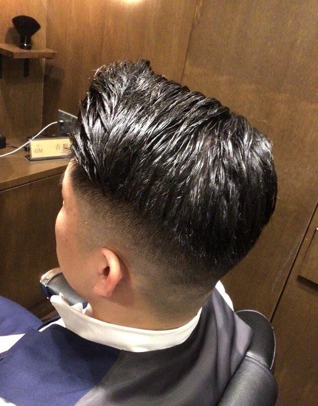 トップを高くして、ハチにボリュームを出しすぎず、三角形のシルエットになるようイメージするとカッコよくキマります!