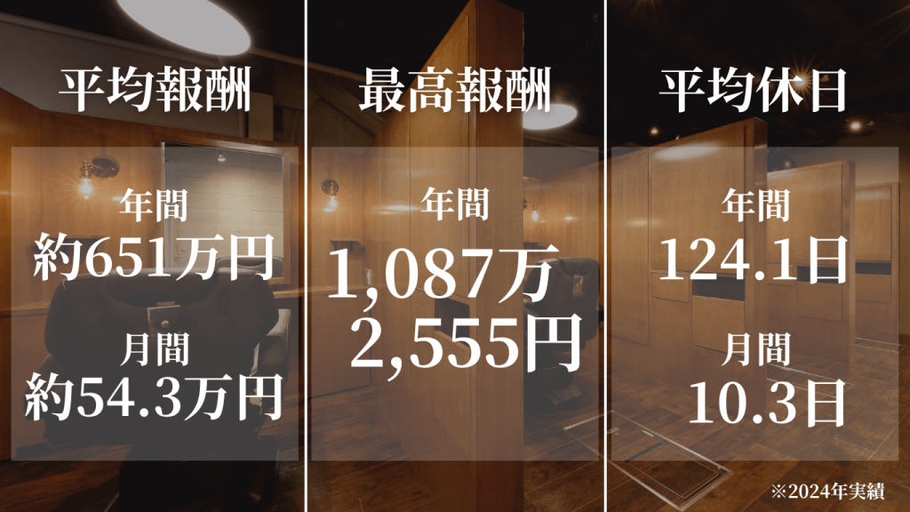 | 年月 | 平均報酬金額 | 平均休日日数 |