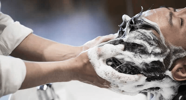 カット前にシャンプーをします。